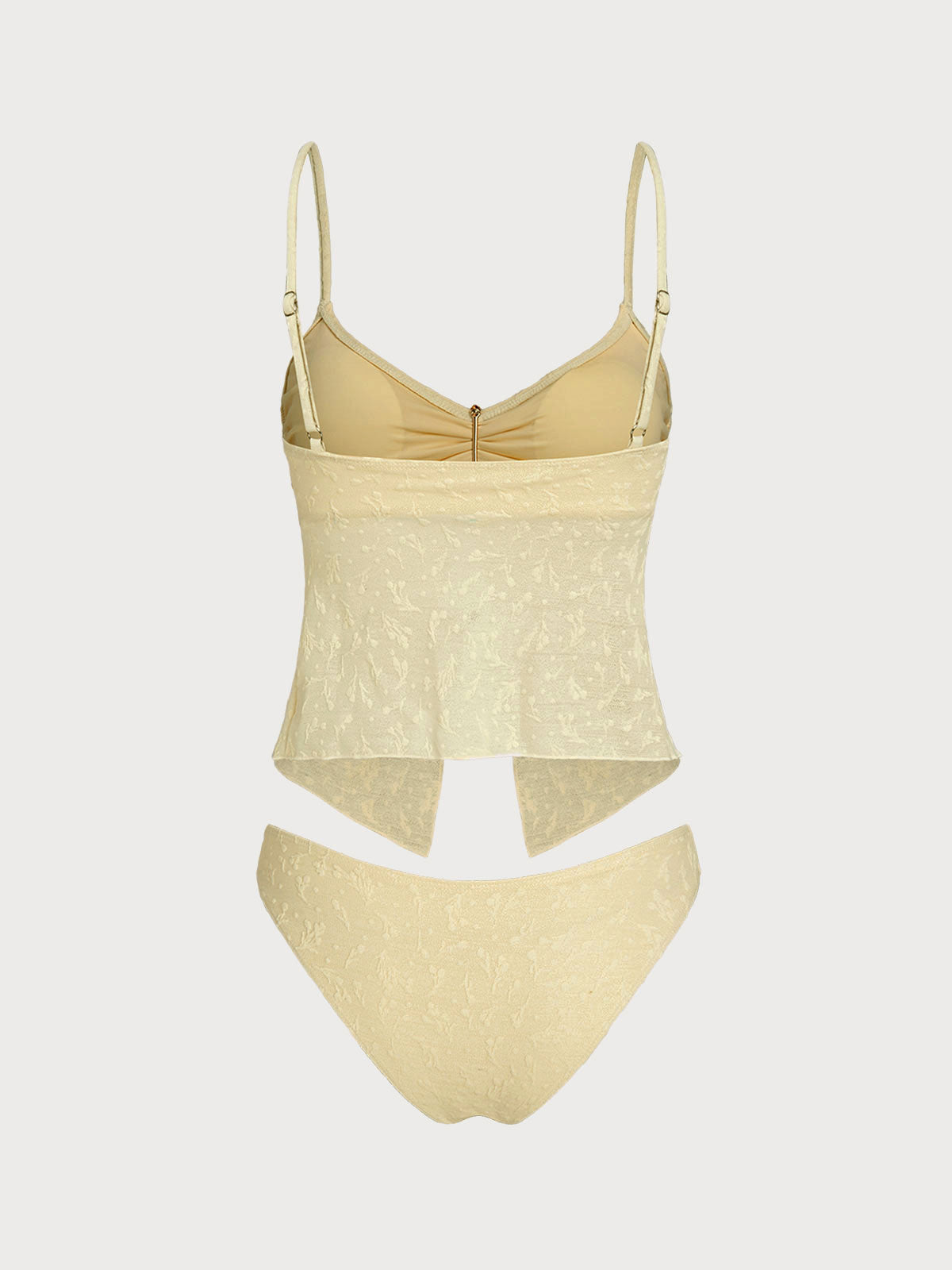 Yellow Cherry Jacquard Conch Trim Tankini Set