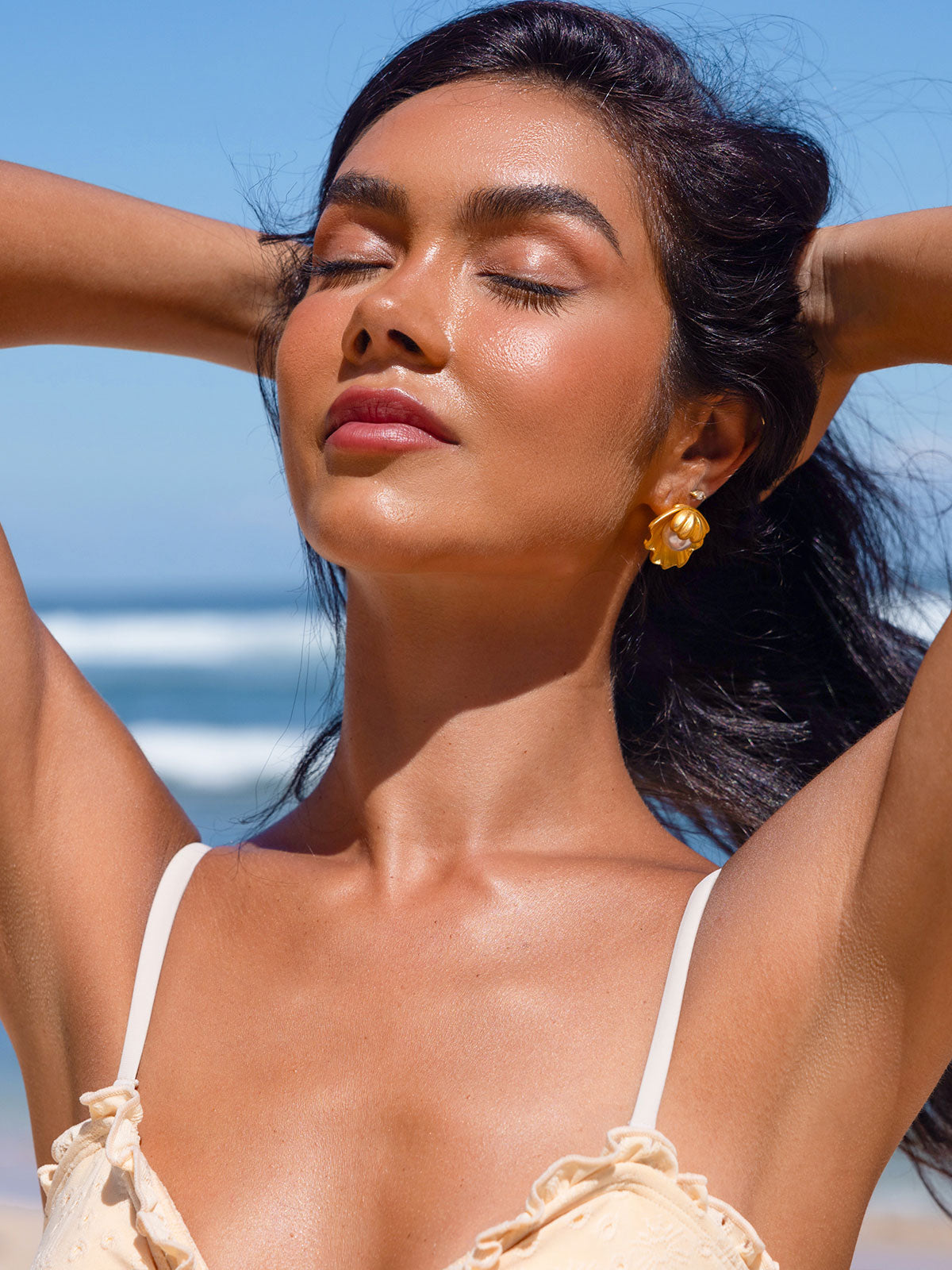 Yellow Contrast Flower Bud Shell Decorated Bikini Set