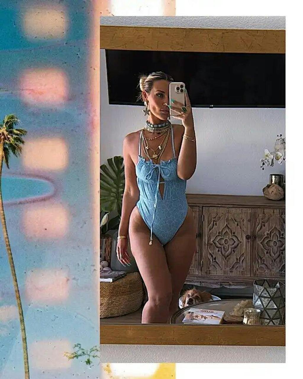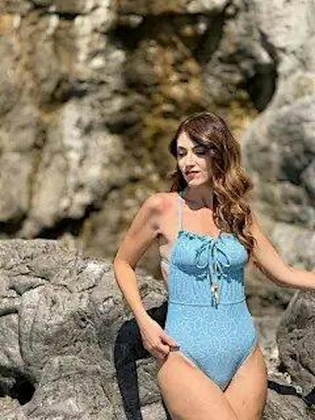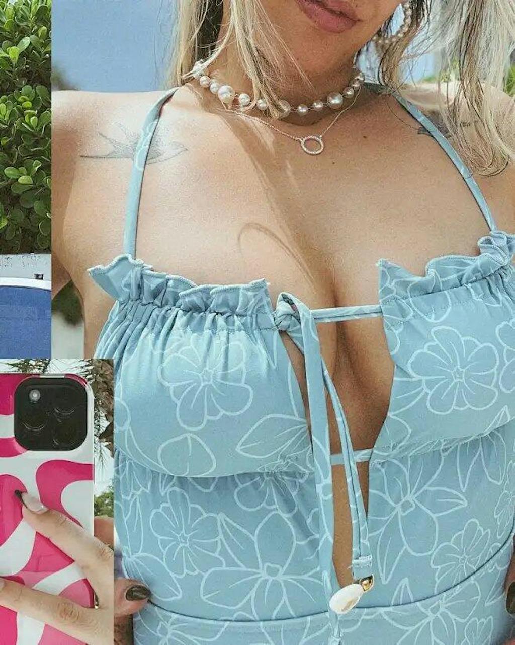 Hellblauer Badeanzug mit Cut-outs und Falten