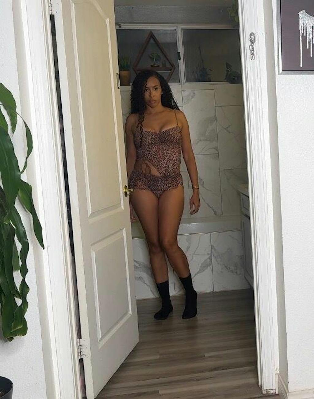 Brown Shirred Leopard Print Tankini Set