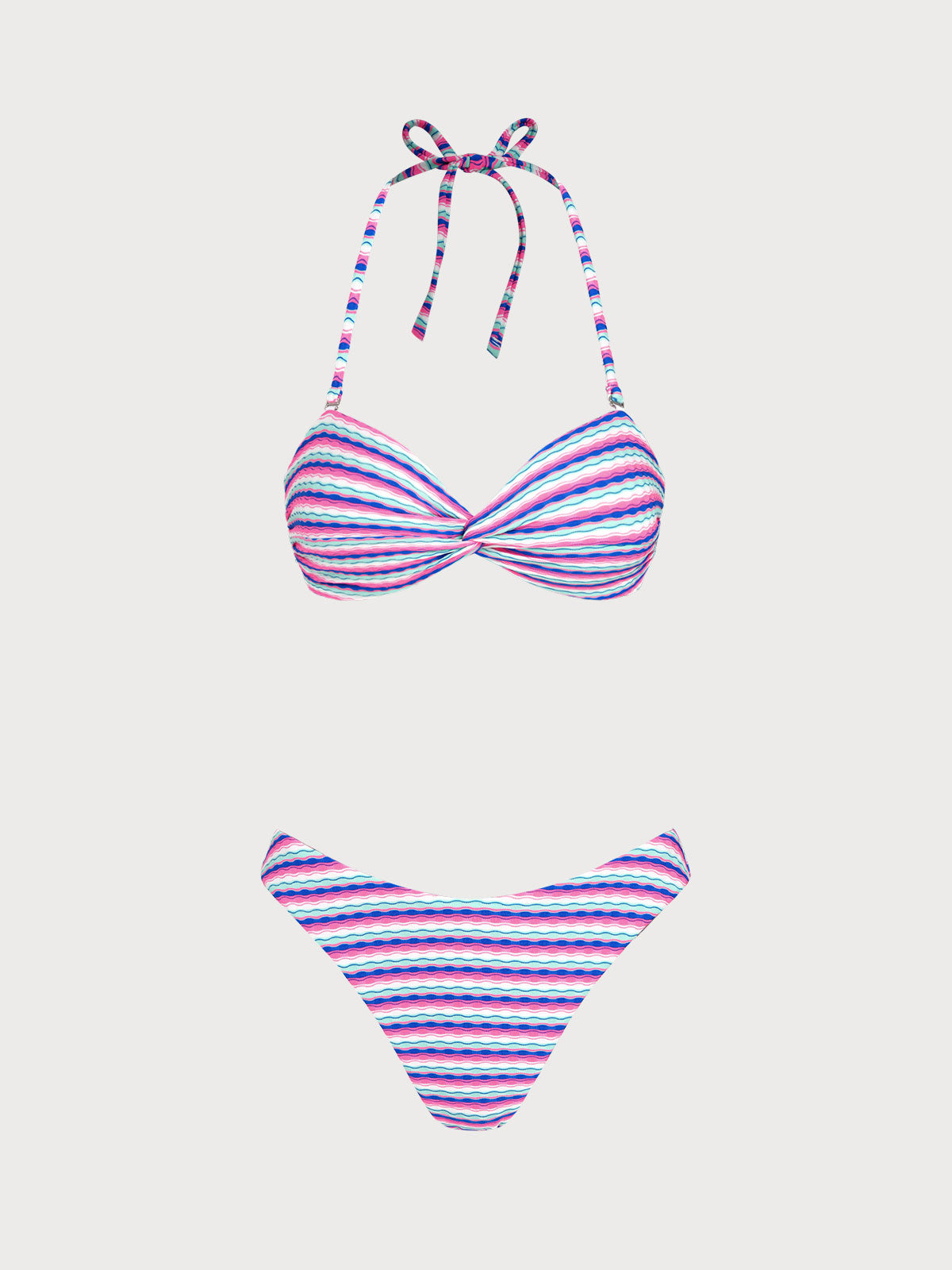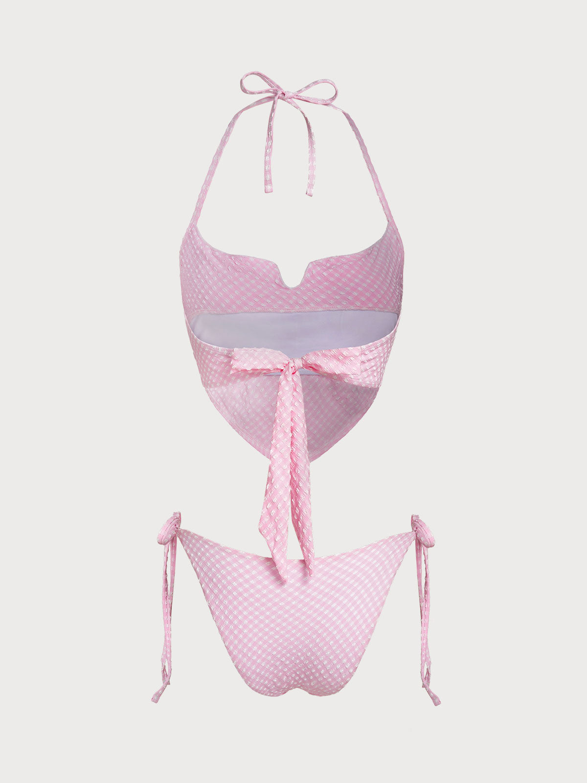 Bean Pink Polka Dot Contrast Bikini Three-Piece Set