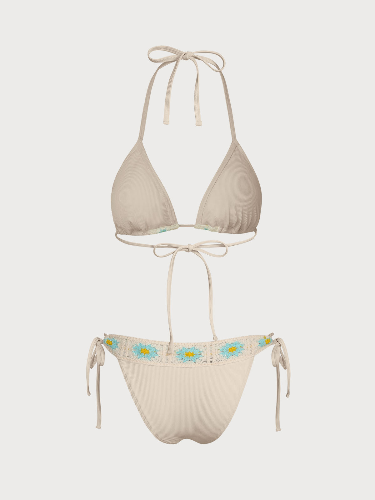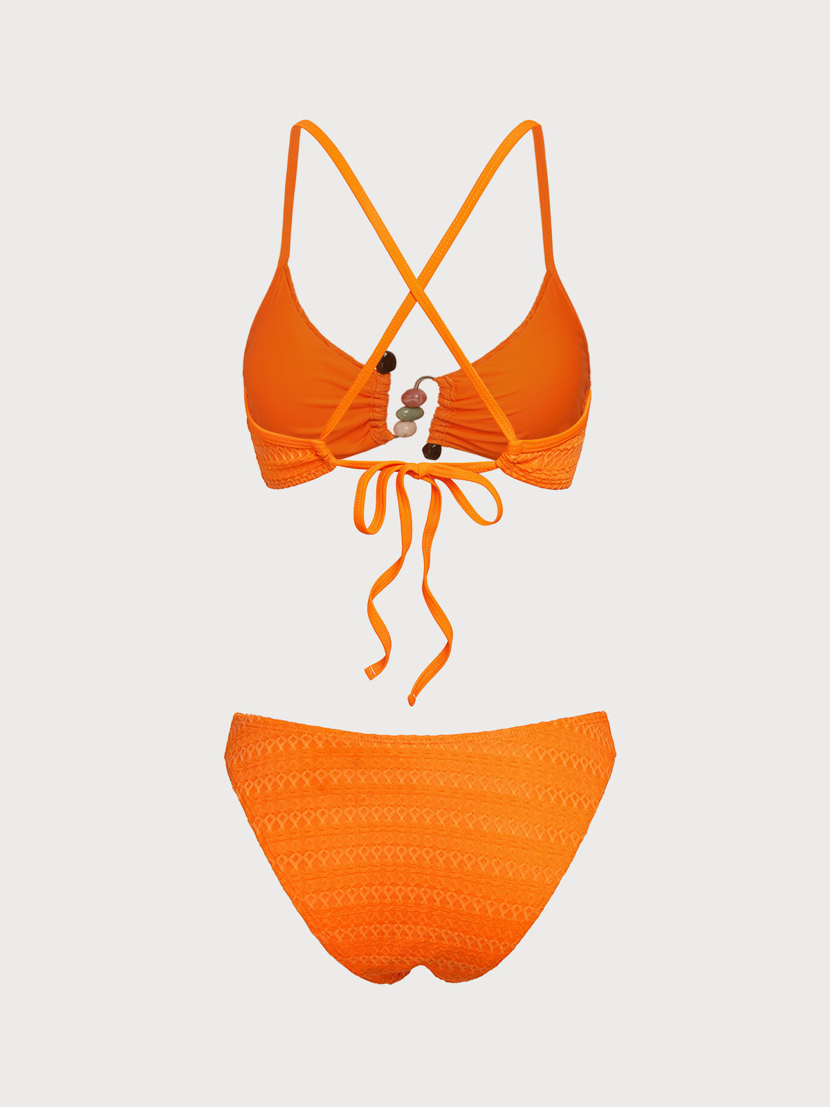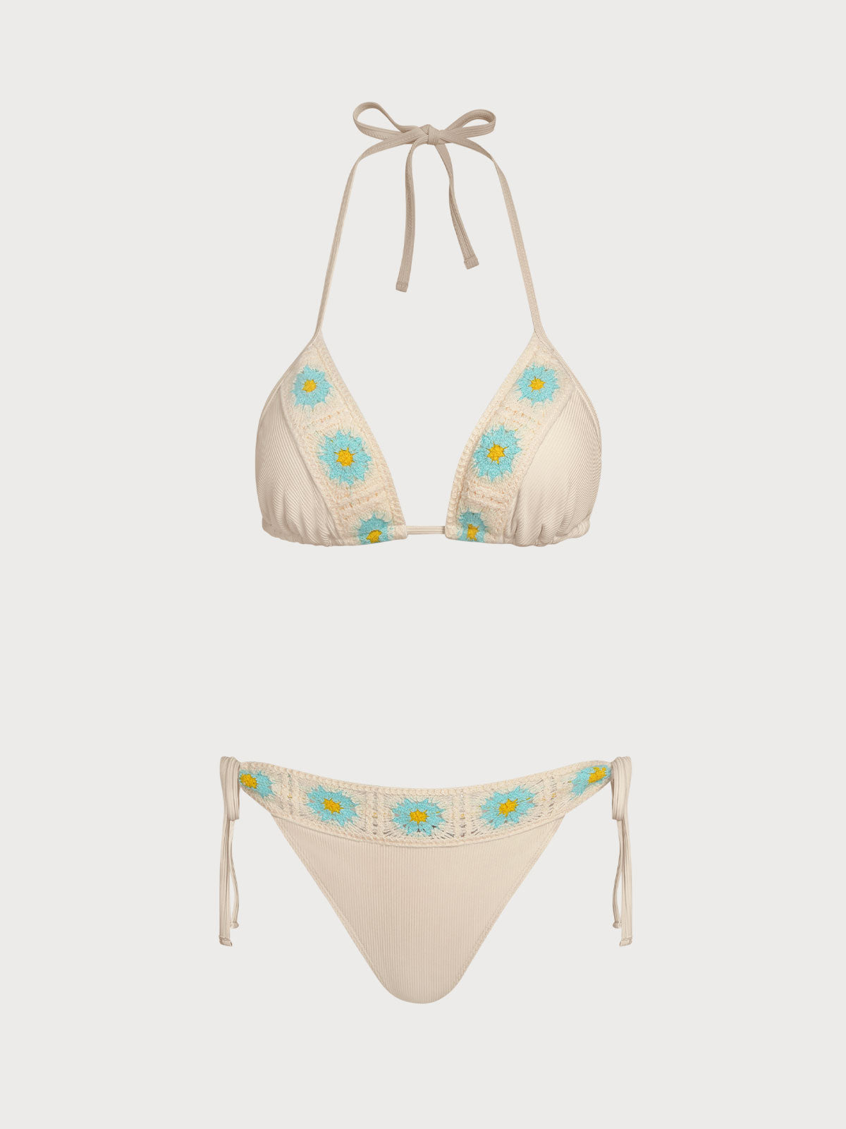 Yellow Contrast Flower Bud Shell Decorated Bikini Set