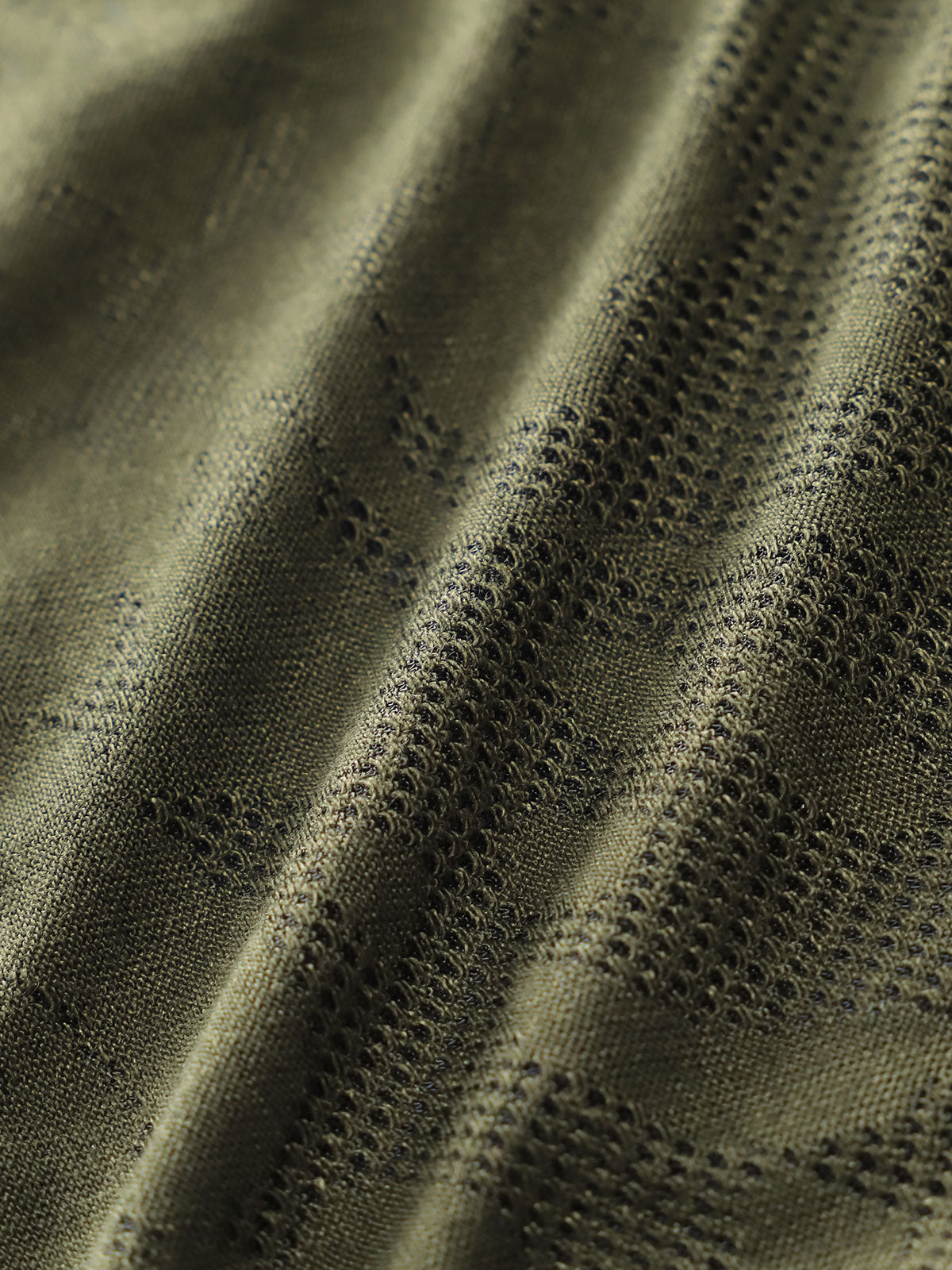 Army Green Ruffle Front Tie Bikini Set. This summer’s standout! Rich army green meets textured floral-geometric jacquard, elevated by ruffled front ties, charming knots, and bowknot accents—blending retro charm with playful elegance effortlessly. Low-waisted high-cut bottoms lengthen legs, with a drawstring closure and anti-roll waistband, delivering moderate coverage that flatters curves. Every textured detail shines—this set is your perfect pick for tropical getaways or poolside parties!