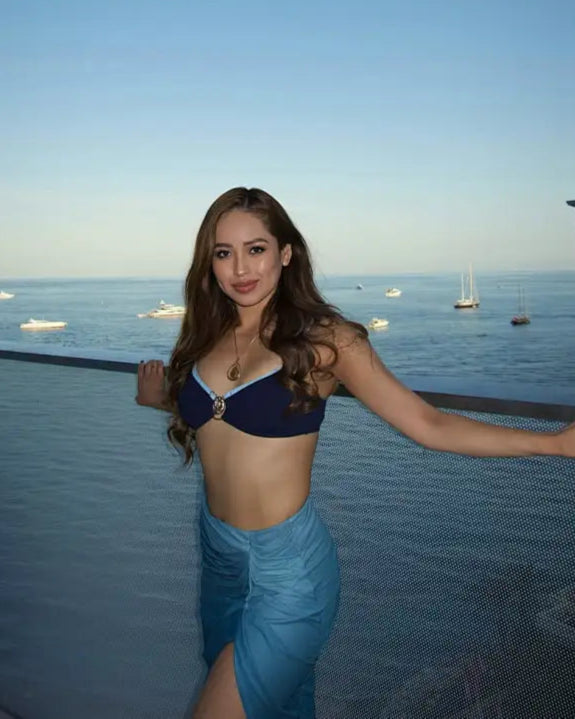 Our Blue Bikini Set allows you to enjoy all of the perfect color contrast and the chic U-neckline.it is not only comfortable but also makes you look sexier. The low waist bottoms offer moderate coverage for hips of all shapes and sizes. It has high stretch material and removable soft cups for a comfortable fit for all bust sizes.