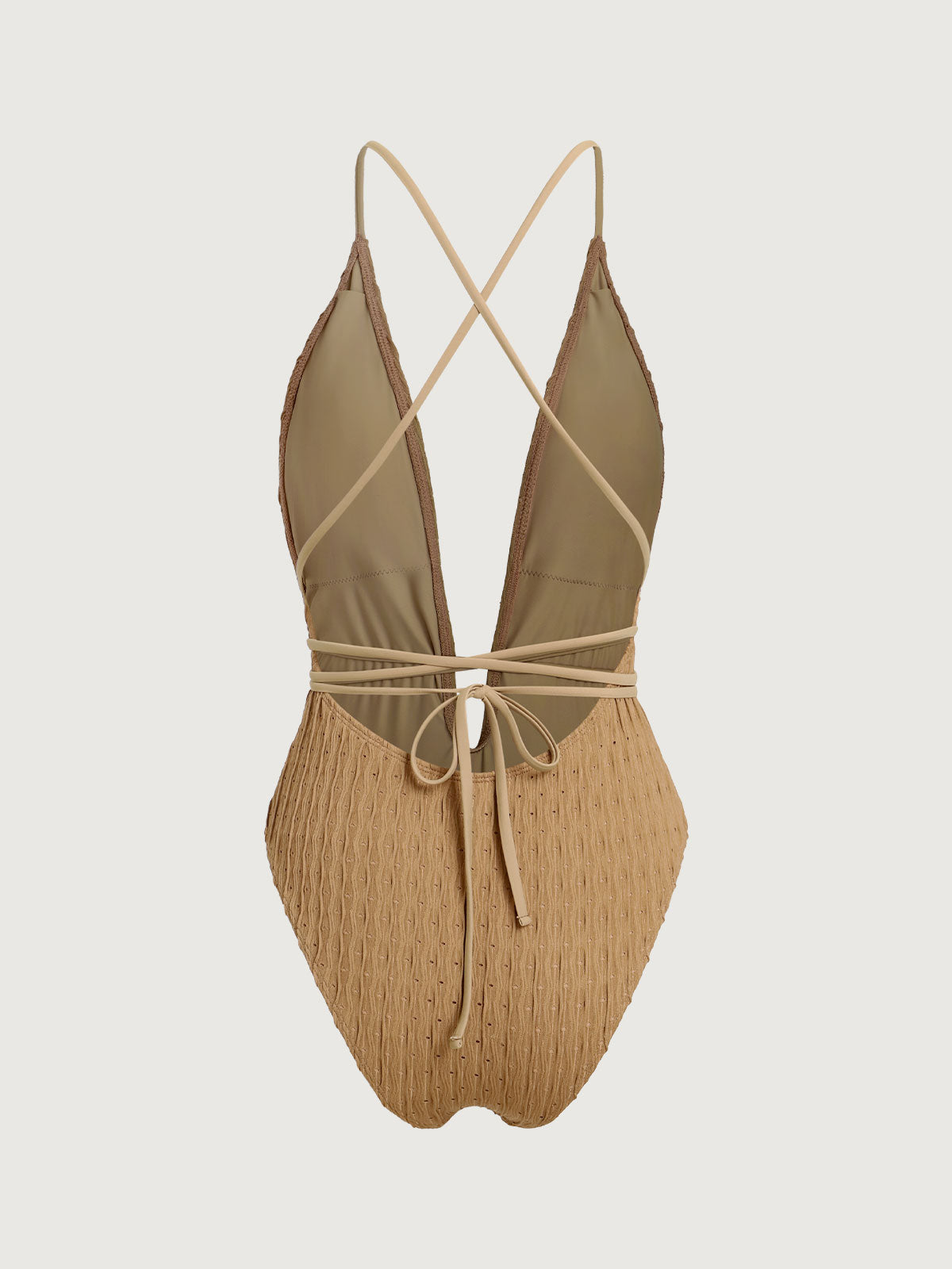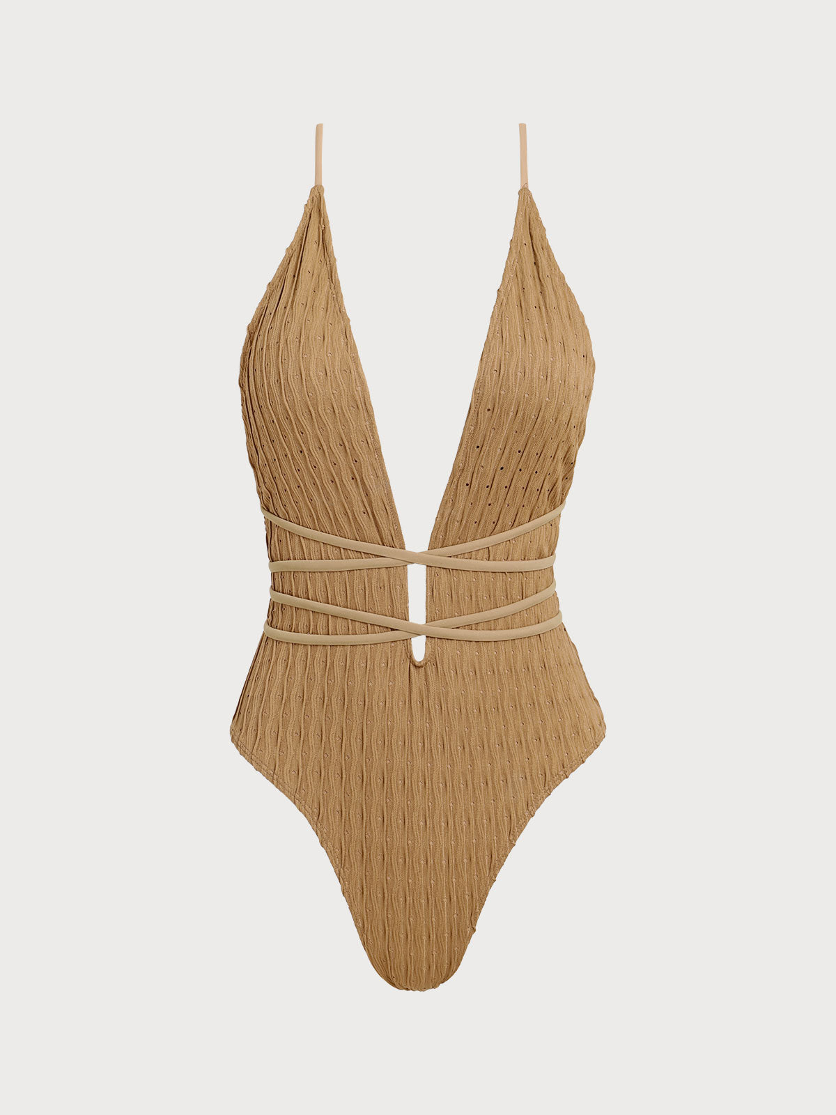 Brown Mesh Cover-up Tankini Three-Piece Set