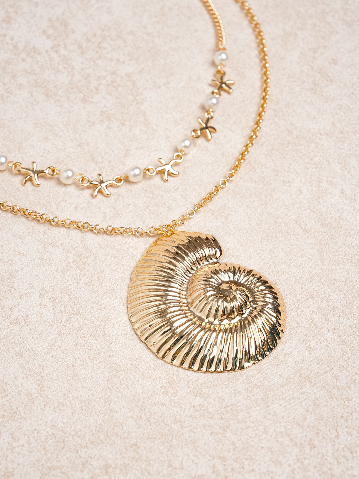 Gold Double Large Conch Starfish Imitation Pearl Necklace