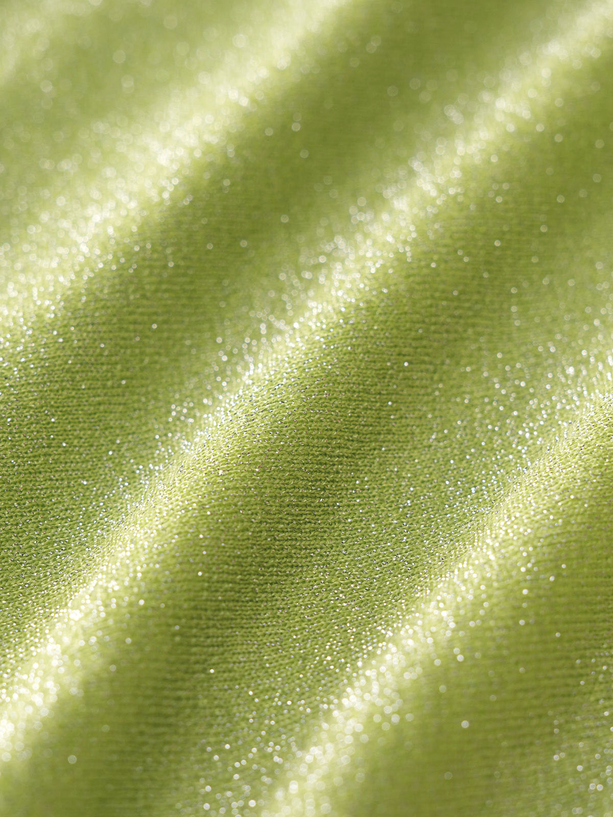Elevate your swimwear collection with our Light Green Shining Metallic Tankini Set. Sunlight dances across its luminous stretch fabric as you move, while the moderate-cut bottoms stay flawlessly put. Low-rise construction sculpts your silhouette like liquid mercury. Trace the journey of intricate knots along your spine, where shimmering lurex threads pulse through jacquard terrain, anchored by cool O-ring hardware. An elastic waistband breathes with every twist. Hidden removable cups shape your confidence.