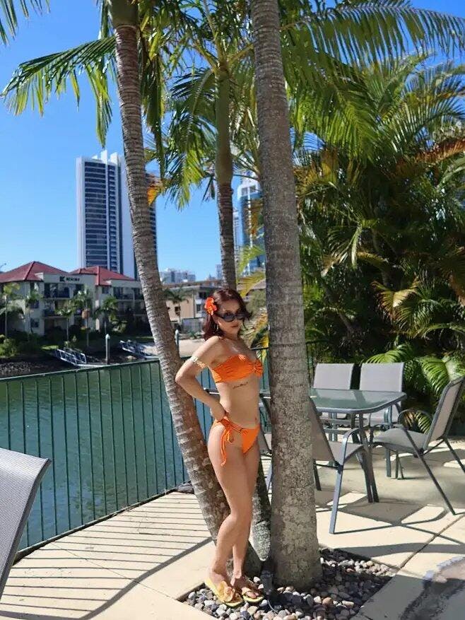 “This orange bikini has become my absolute favorite - I love how it brings out that fresh, vibrant style I always want to shine in the sun.”