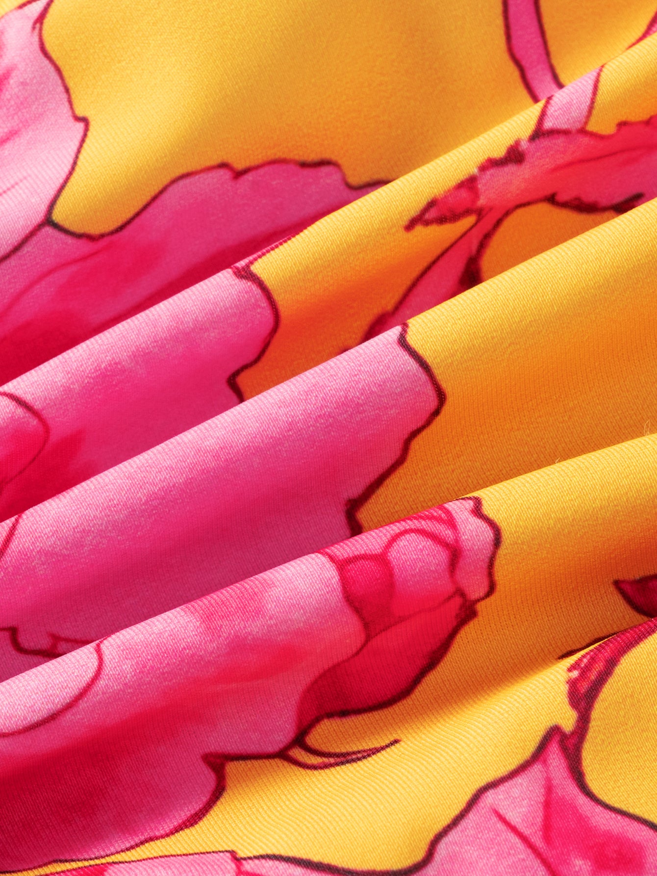 Orange Floral Contrast Print Bikini Set