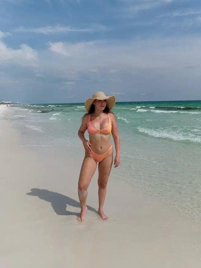 Brown Irregular Hem Contrast Beaded Tankini Set
