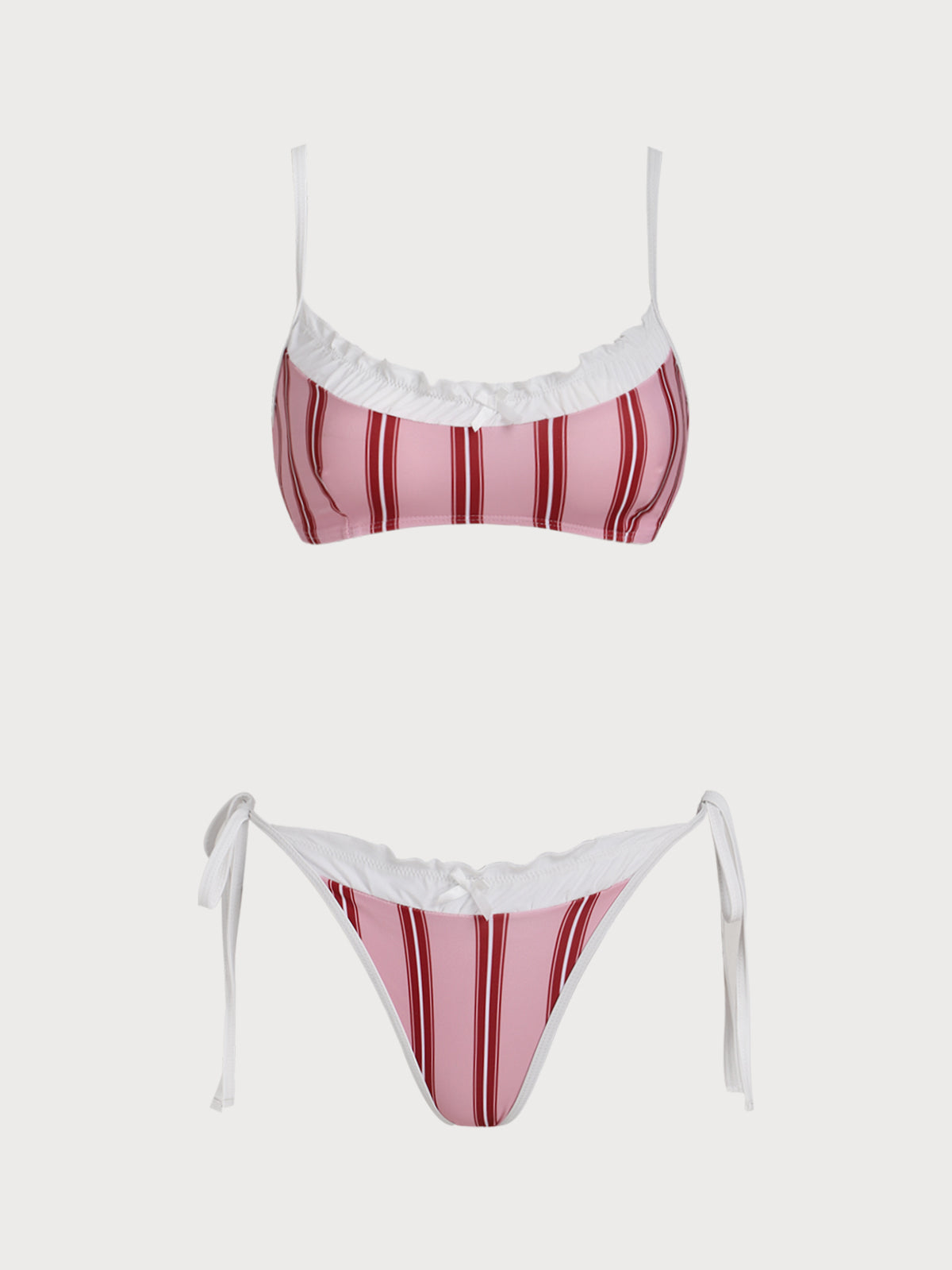 Pink Contrast Stripe Print Bikini Set