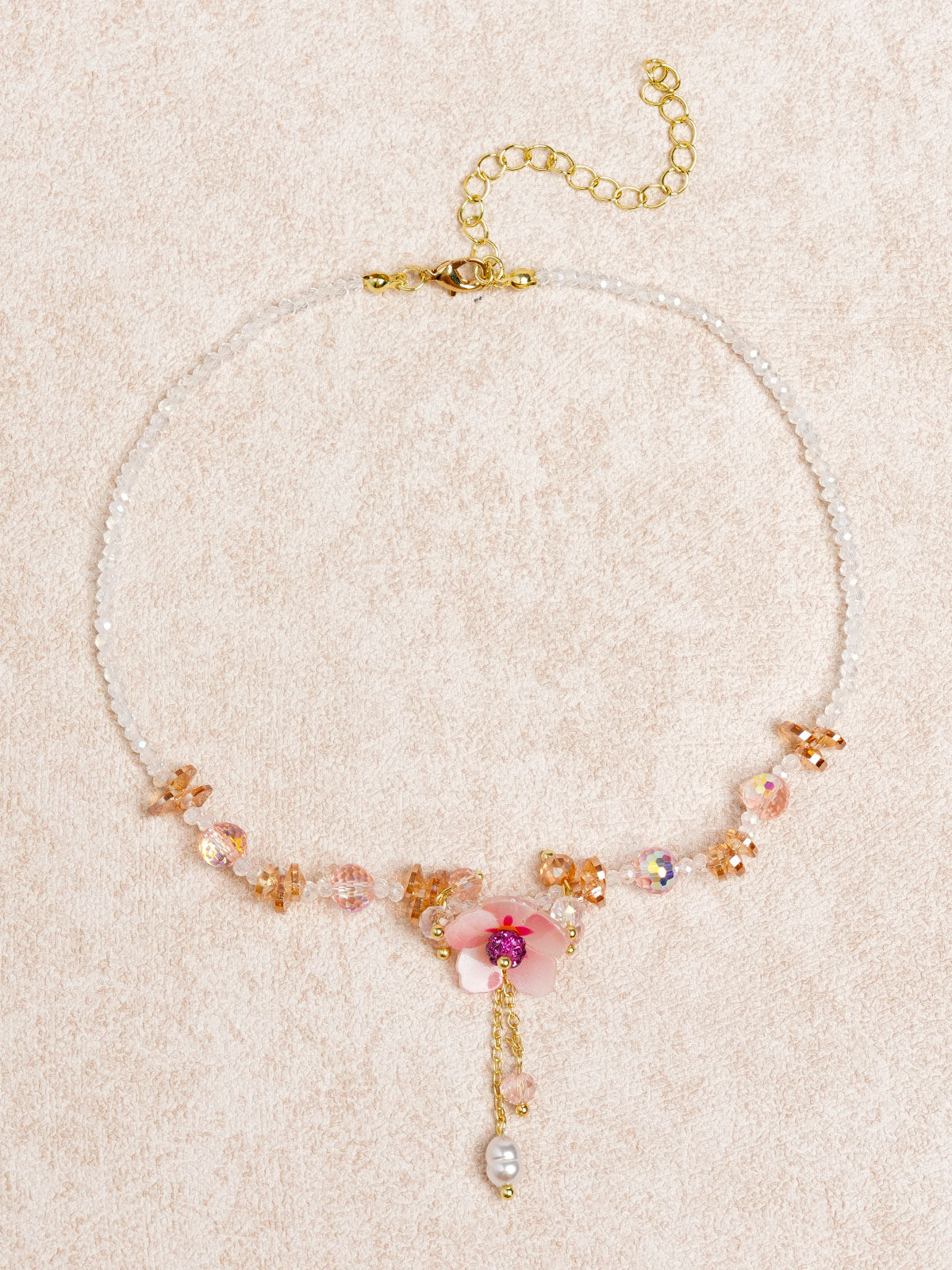 Pink Diamond Flower Imitation Pearl Crystal Necklace