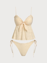 Coffee Contrast Polka Dot Mesh Tankini Set