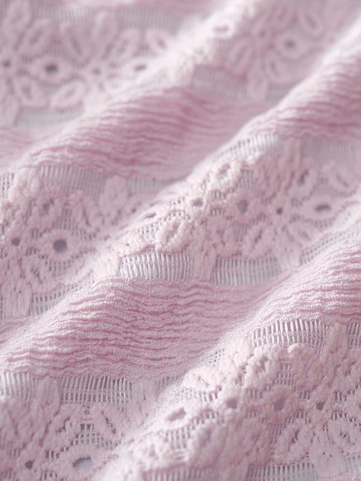 Pink Polyester Knit Contrast Lace Bikini Set