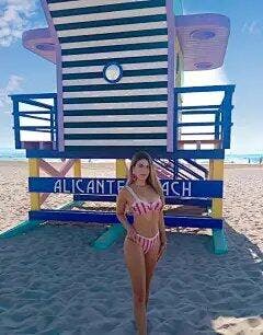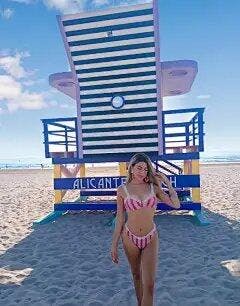 This pink stripe print bikini set is designed with an underwired top and removable soft cups, which can support and complement small to medium chests, t offers moderate chest coverage. These low-waisted bikini bottoms feature sexy lace-up sides that accentuate the hips and provide the perfect amount of cheeky, moderate bottom coverage for a glamorous beach look.
