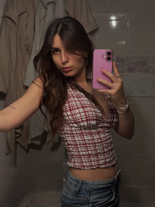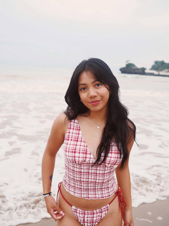Red Plaid Ruched Tankini Set Sale price$42.00