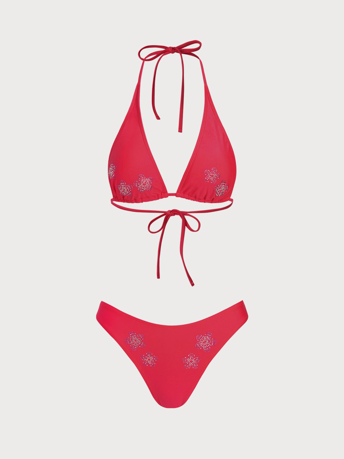 Bean Pink Polka Dot Contrast Bikini Three-Piece Set