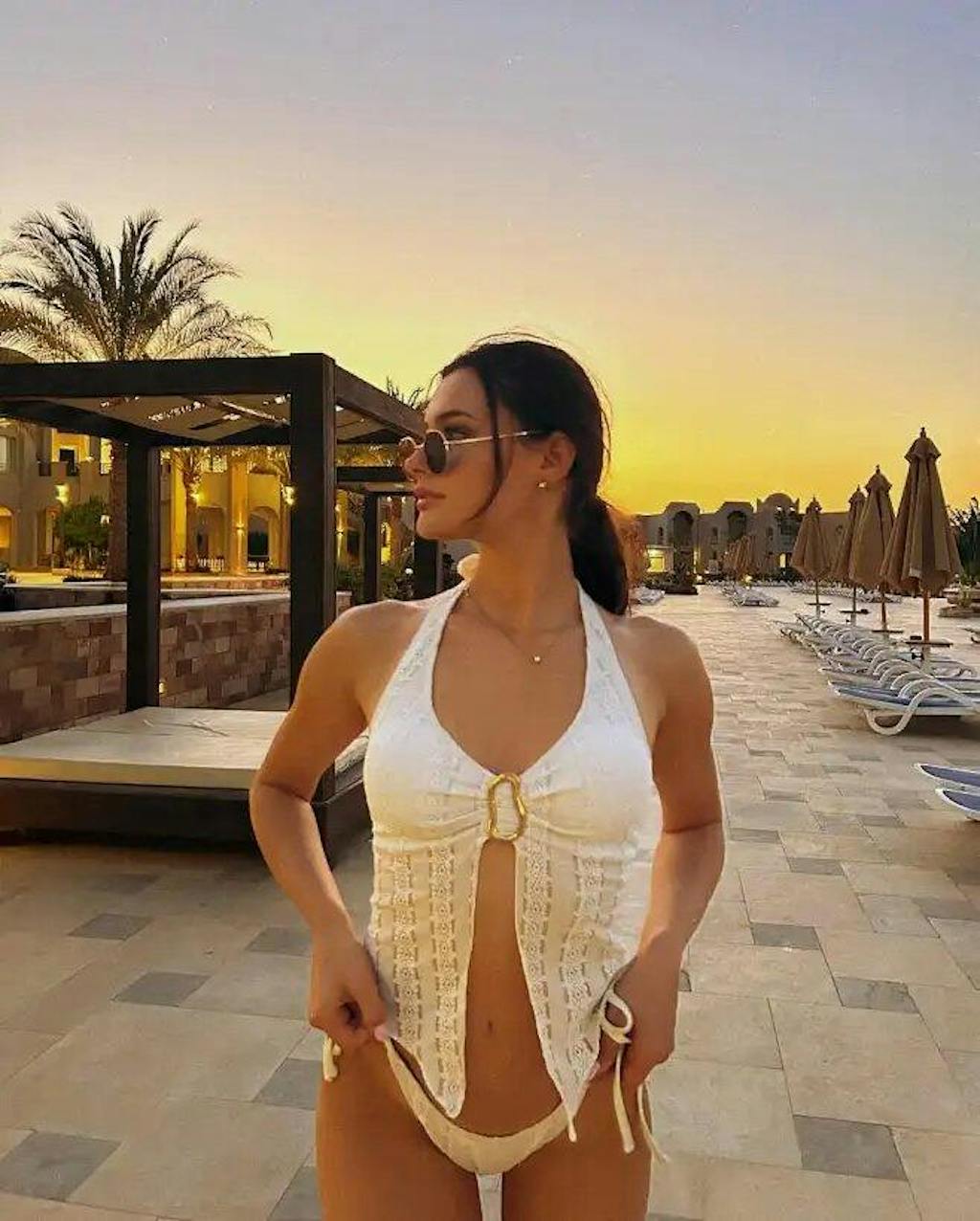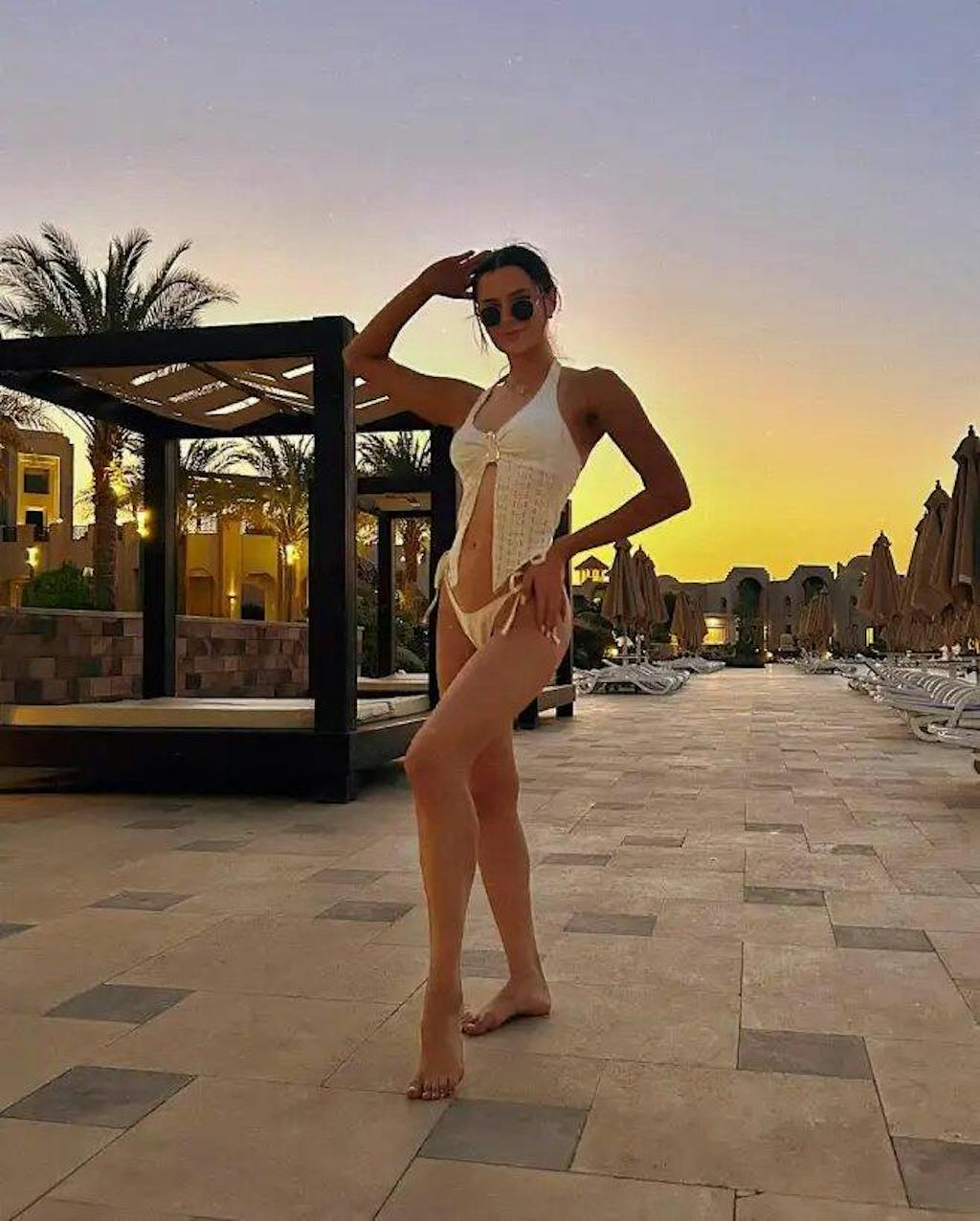 Dress in the White Irregular Metal Slit Tankini Set. Irregular metal slits cut sunlight like Venetian fortress ruins—98/2 poly-spandex draping like sun-bleached sailcloth over skin. Jacquard florals bloom like fresco botanicals crumbling in sea air. The open back outlines your spine like arched cloisters. This is how Cycladic light endures.
