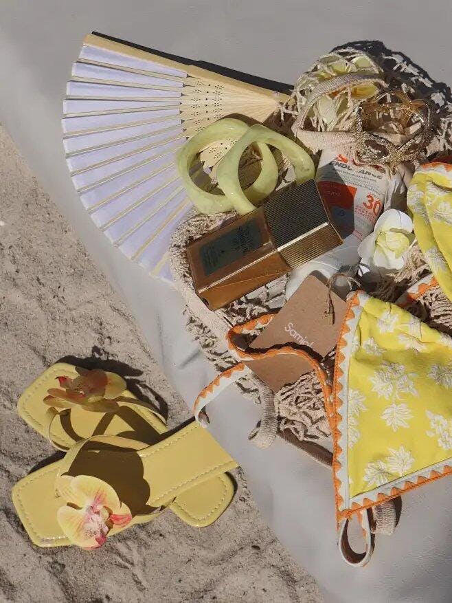Yellow Contrast Flower Bud Shell Decorated Bikini Set