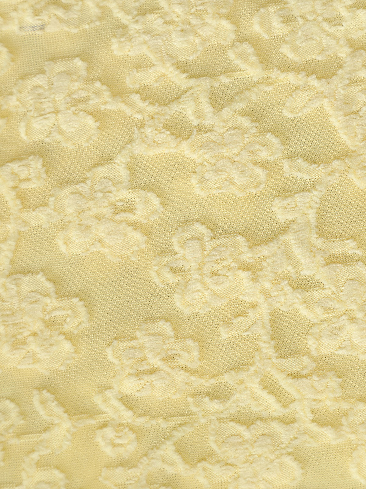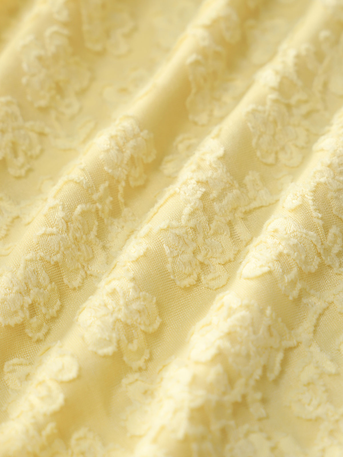 Meet your summer suits: the Yellow Polyester Knitted Jacquard Ruffle Tankini Set. Sunlight dances across its textured knit, and high-stretch polyester-spandex blend feels like liquid gold. The V-neck top, 3/4 cup coverage with removable soft cups, while cascading ruffles accent. Botanical motifs bloom through jacquard fabric, backed by a barely-there 90/10 spandex-polyester lining. Garden vibes, engineered for real life.