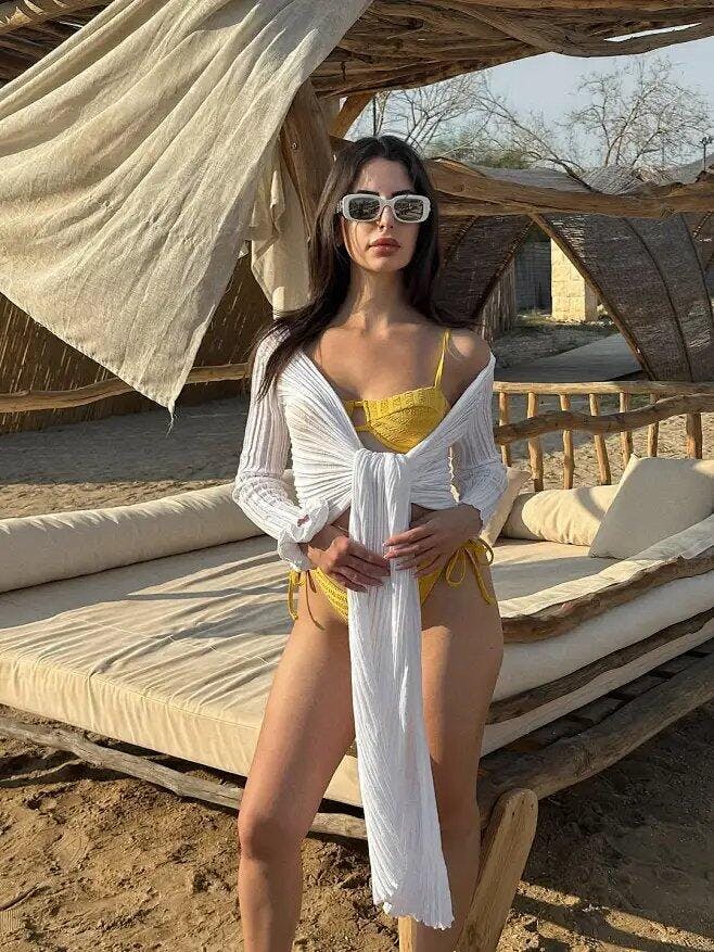 Yellow Contrast Flower Bud Shell Decorated Bikini Set
